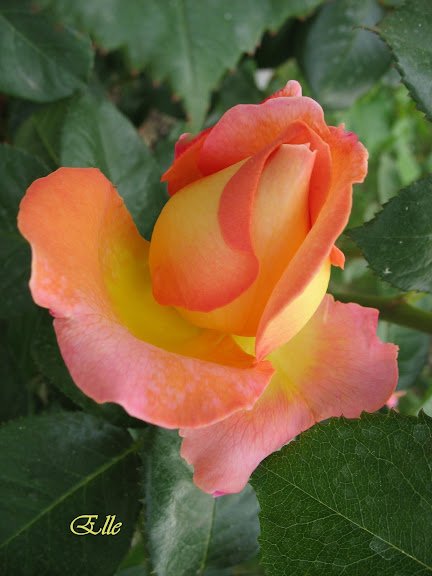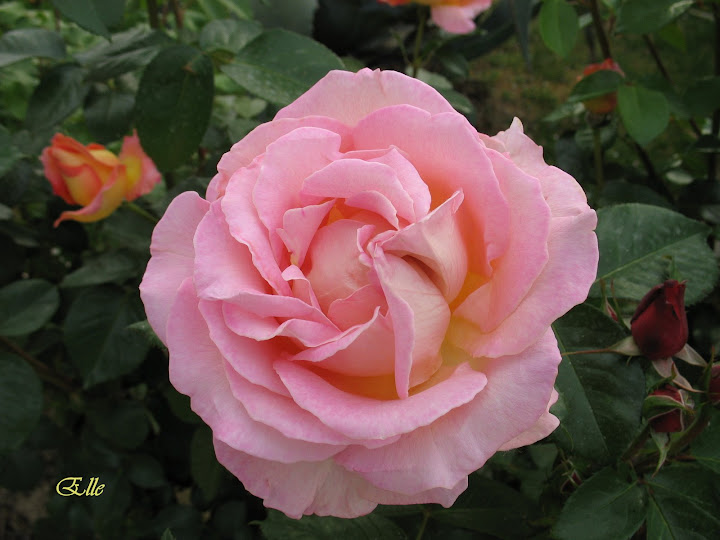 Druga, ki jo imam posebno rada (jih je pa še veliko), je prav tako Meillandova Elle. Kot prava ženska, je tako raznolika, tako po obliki cvetov kot po njihovi barvi, da bi potrebovali nešteto slik, da bi ujeli vse njene izraze. Barva je načeloma rožnata, proti sredini pa rumena, vendar je razlika v niansi lahko prav precejšnja, in to hkrati, na isti rastlini. Grmiček je nizek (80 cm) in se lepo razrašča. Cveti dokaj bogato in zadnji cvet je letos imela še v tem mesecu. Elle seveda tudi lepo diši (v skladu s tem, da je hibridna čajevka, seveda)