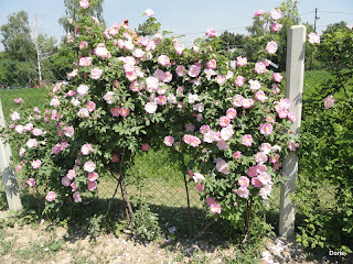 Potem smo šle v rožni park, oddaljen kakih 10 minut vožnje z avtomobilom. Posajene so vse ograje na katerih rastejo različni šipki celega sveta, ki so se že lepo razrasli in so tudi že lepo cveteli. Veliko fotografij je prilepila Poezija, jaz dodajam samo ta detajl.