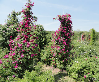 Ostalih starih vrtnic vseh razredov je bilo pa toliko, da je bilo težko slediti. Precej jih je že odcvetelo, v novem nasadu pa je veliko še majhnih. Moja osebna preferenca so sicer burbonke in hibridne ponavljalke, gospod Petrovič sam pa je najbolj ponosen na svojo zbirko divjih vrtnic. Drugo leto bo ta nasad že prava stvar, saj tam vrtnice rastejo neverjetno hitro. Očitno je nekaj v zemlji ali klimi tam takega, kar jim zelo odgovarja. |